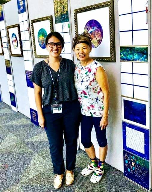Dr. Monica M. Ospin lecturer from Broward County Natural Resources Specialist at Global warming Exhibition with artist Huong